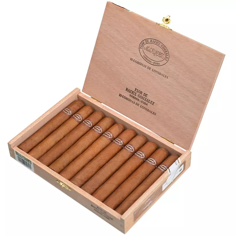 拉斐尔-冈萨雷斯 Coronas de Lonsdales雪茄按照传统的"Totalmente al ManoconTripa Larga"制作方法制作,这意味着它们完全是手工制作的,采用长叶卷烟的方式。这款雪茄口感适中,带有复杂的香草和黑巧克力的芳香,给人留下深刻的印象。 根据您提供的尺寸信息,这款雪茄的模数是Hermoso N°4,长度为127毫米,直径为19.05毫米(环规48)。每盒拉斐尔-冈萨雷斯 Coronas de Lonsdales雪茄含有10支雪茄。 这款雪茄的吸烟时间约为30至45分钟,这取决于个人的吸烟速度和偏好。